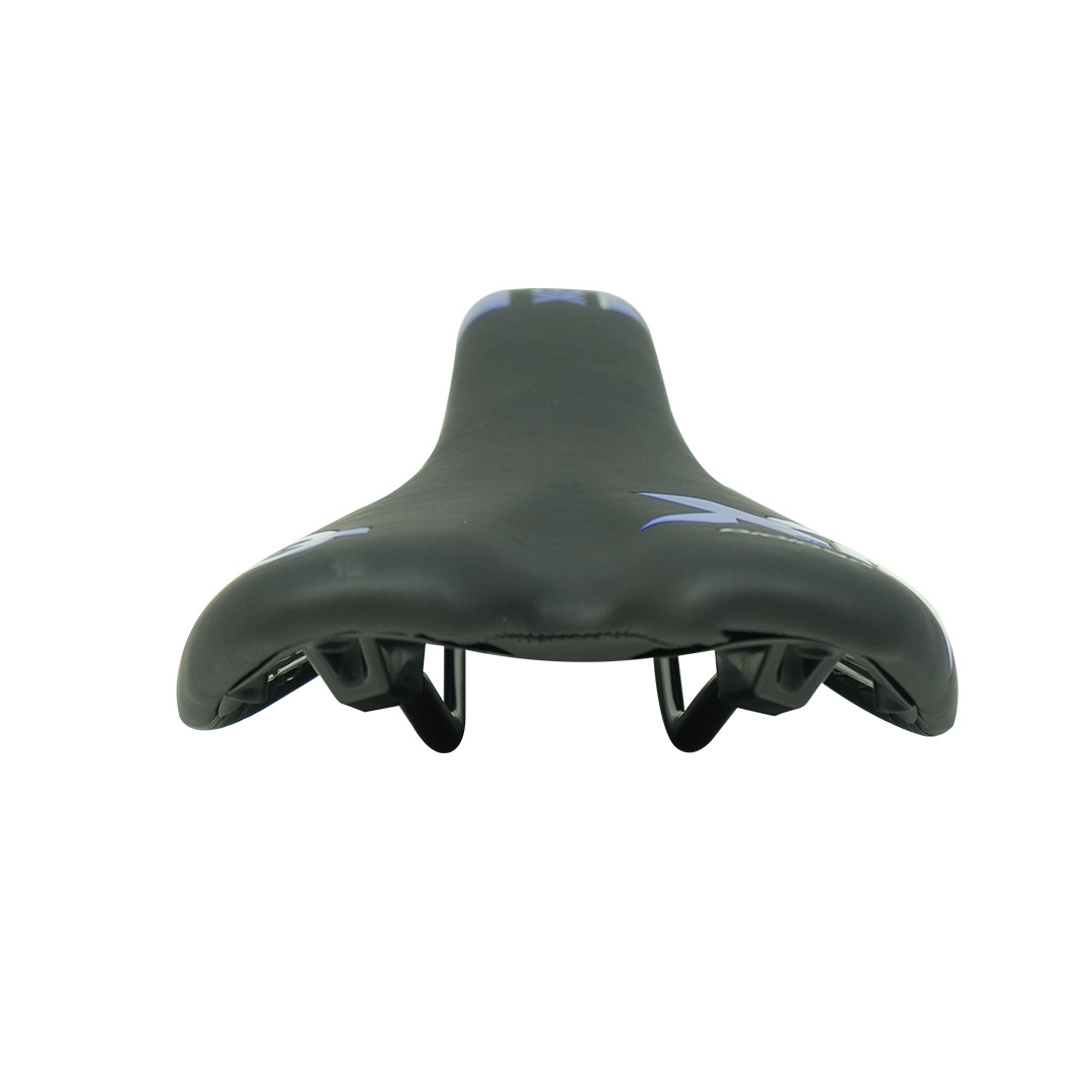 Prologo X12 R5 NX 12 550 BL 01-VA, asiento de bicicleta ergonómico con relleno de gel y cubierta de cuero sintético, diseñado para brindar alta comodidad y reducir la presión en trayectos largos; se adapta a la anatomía del ciclista disminuyendo la fatiga, apto para bicicletas de ruta, MTB y urbanas, estructura resistente a la intemperie, buena absorción de vibraciones, firmeza y estabilidad en pedaleo, diseño versátil y duradero, ideal para uso recreativo o intensivo, color negro/azul