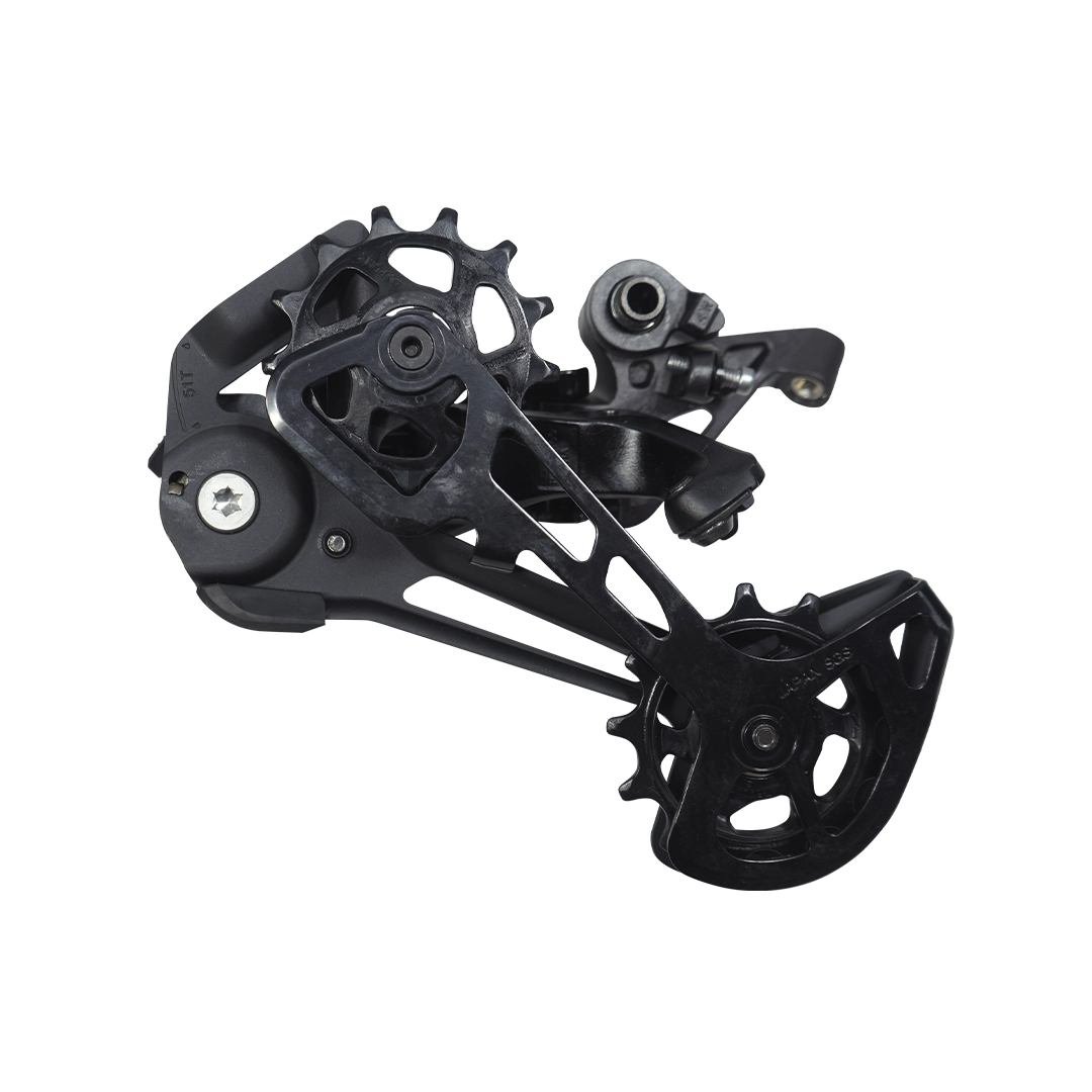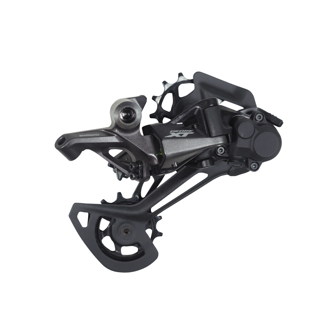 Shimano Deore XT RD-M8100 SGS, cambio trasero MTB 12v (1×12), pata larga (SGS), Shadow RD+ con clutch, Hyperglide+, máx piñón 51T (10-51), capacidad 41–51T, poleas 13D con rodamientos, transmisión silenciosa (bump stopper), baja tensión en piñón grande, compatible cadena CN-M8100, enrutado directo de cable, perfil bajo, ~284–295g, color negro