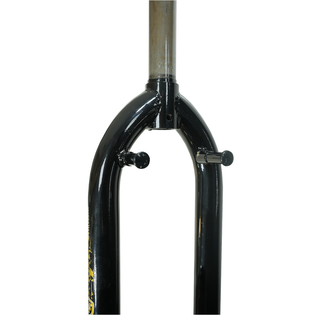 Horquilla BMX Freestyle Skull 20″ Poste Corto, fabricada en cromoli, color negro. Poste de 15,5 cm de largo, ideal para ajuste preciso y mayor resistencia. Compatible con bicicletas de 20″ y eje de 14. Con detalles esteticos que no afectan su funcionamiento.